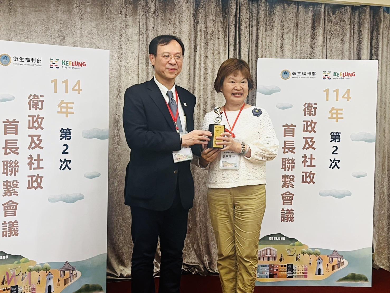 嘉義縣社會局張翠瑤局長12日代表參加衛生福利部在基隆長榮桂冠酒店舉行,並頒發「國民年金繳費率績效評核」獎項,以表揚成績優異縣市。嘉義縣因積極配合推動國民年金制度成效優異,獲頒全國「第一名」獎項。