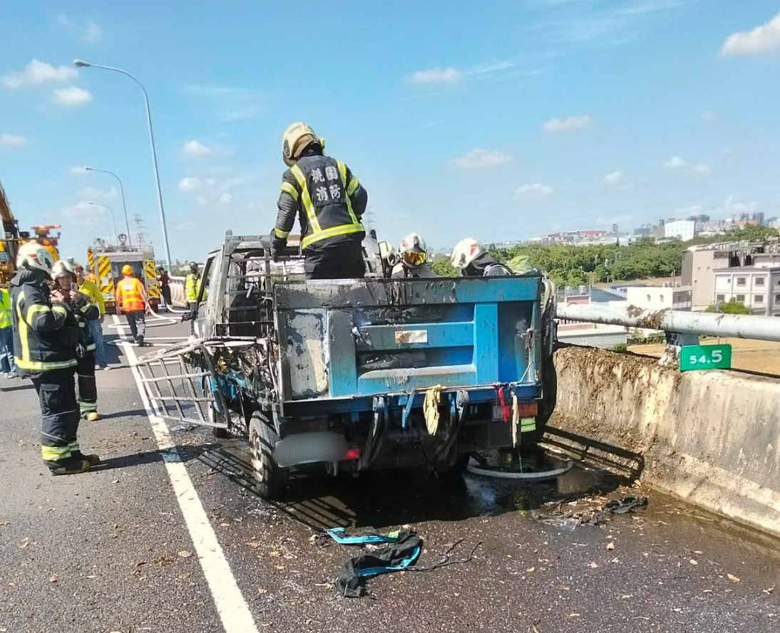 國道公路警察局第一大隊表示,該大隊勤務指揮中心於今日上午9時27分接獲通報,44歲的賴姓男子駕駛自小貨車,行經國道1號高架南向54.5公里桃園路段時,發現車上所載運的樹枝、落葉等雜物突然起火燃燒,情況危急。賴男當機立斷,立即將車輛停靠於路肩,並與車上乘客迅速下車逃生。由於處置得宜,本次事故並未造成任何人員傷亡,也未波及其他車輛,是不幸中的大幸。