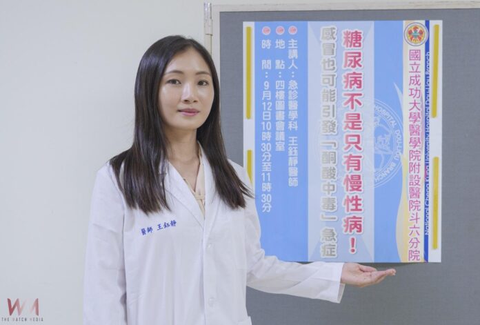 成大醫院斗六分院急診醫學科王鈺靜醫師指出,糖尿病酮酸中毒是一種嚴重急症,當體內胰島素不足時,血糖急速升高,身體改以分解脂肪產生酮體,導致血液酸化,若未及時治療,可能在短時間內引發休克、呼吸衰竭甚至死亡。危險因子包含感染、藥物使用不規律、脫水、酗酒及急性壓力事件(外傷、心肌梗塞、中風等)。
