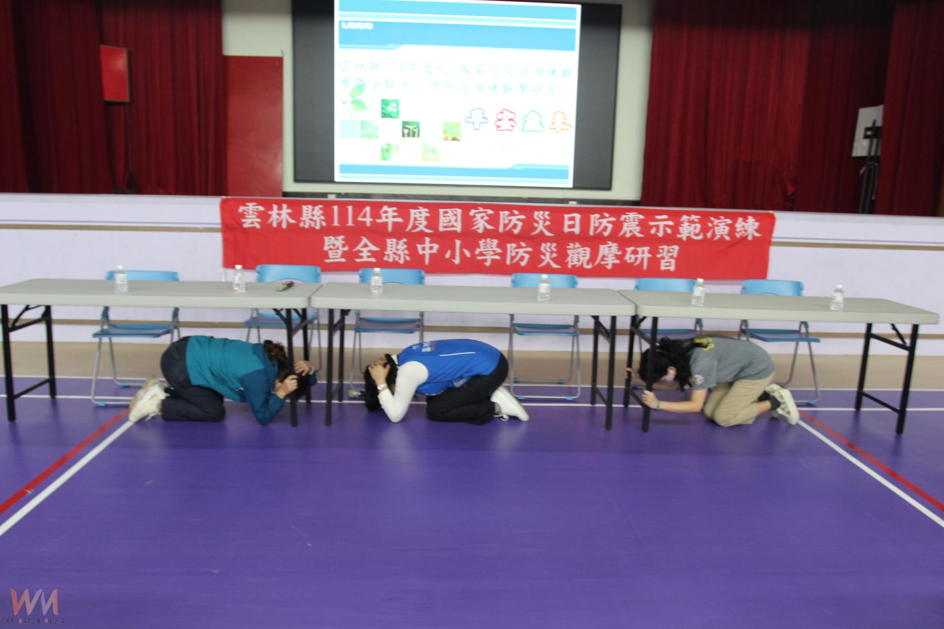 雲林縣政府今(17)日上午舉辦全縣中小學防災觀摩研習活動,當地震警報響起時,縣長張麗善和全部人員立即依程序做緊急應變。(圖/記者簡勇鵬攝)