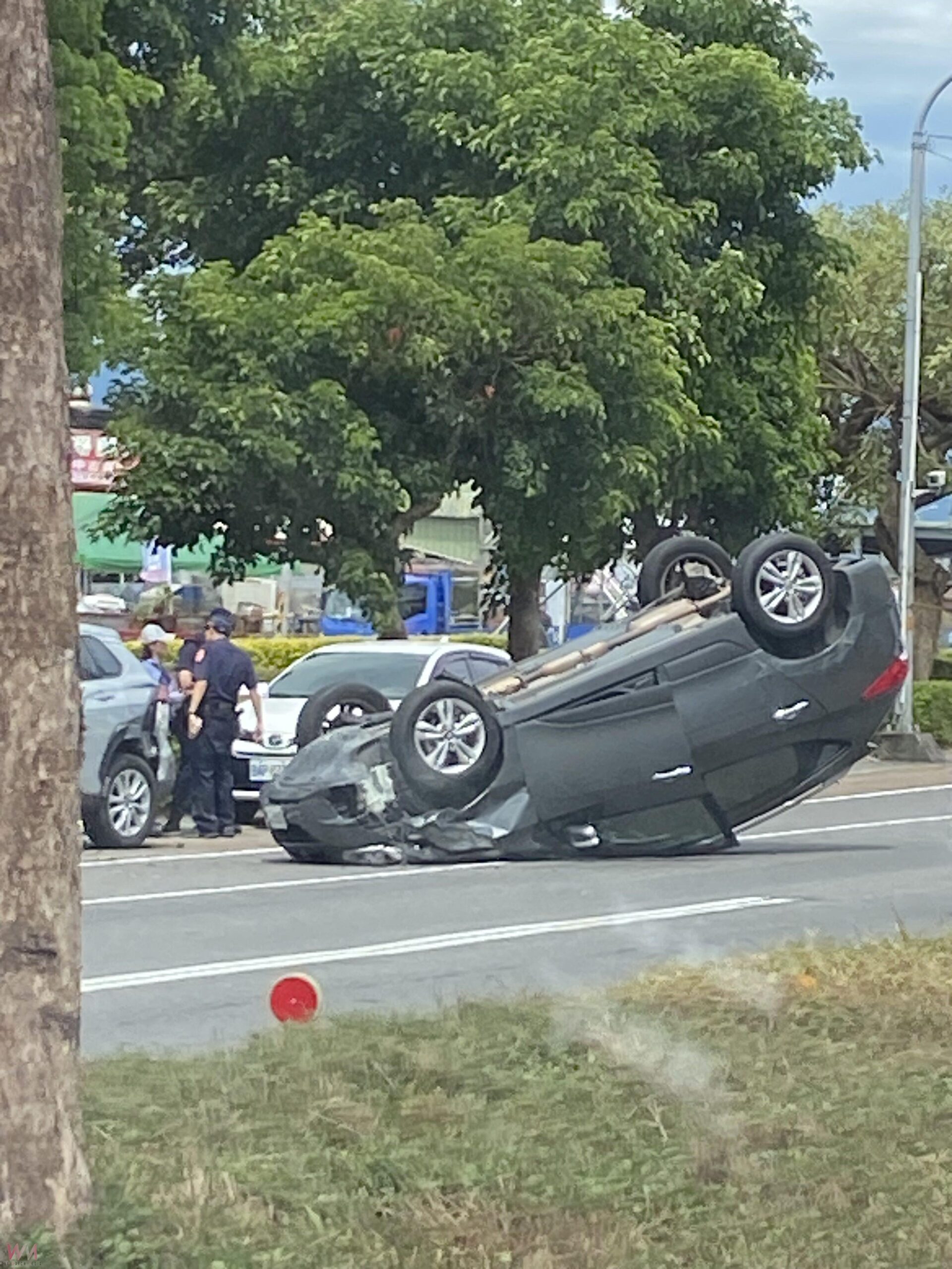 (觀傳媒宜蘭新聞)【記者陳俊傑/宜蘭報導】今(19)日上午11時左右宜蘭縣五結鄉中正路三段發生一起交通事故,一輛自小客車擦撞路邊車輛後四輪朝天翻覆路中央,所幸只有駕駛脖子稍微被勒到,並未造成人員受傷。