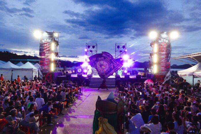 本次音樂會共同聆賞的貴賓包括交通部觀光署日月潭國家風景區管理處柯建興處長、台灣電力公司大觀發電廠鄧文貴副廠長、九天民俗技藝團許振榮團長、伊達邵國小蔡鳳琴校長、日月潭觀光圈聯盟多位理事長等人,齊聚湖畔一同見證盛會。開場由台灣文化的傳承者-九天民俗技藝團,以震撼人心的鼓聲,帶領伊達邵國小以「登鸛雀樓」揭開序幕,隨後,九天民俗技藝團更攜手董事長樂團帶來跨界合作,融合磅礡鼓藝與台式熱血搖滾,接連演出〈對我打〉、〈九天玄女〉、〈戰鼓人生〉及〈眾神護台灣〉等11首代表曲目,並邀請全場觀眾跟著吶喊揮舞,還有互動遊戲滾福氣壽桃及好運金元寶,將氣氛推向最高點!