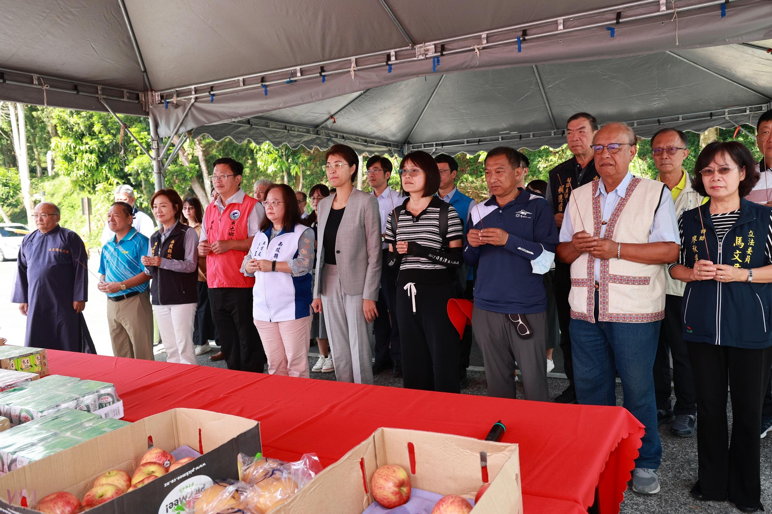 祭典活動,簡單隆重,包括縣府教育處長王淑玲、縣議員石慶龍、魚池鄉長劉啟帆、埔里四季早泳會理事長蔡幸娟、立委馬文君服務處特助廖秋選、日管處科長黃韋杰、魚池鄉學校校長等參加。