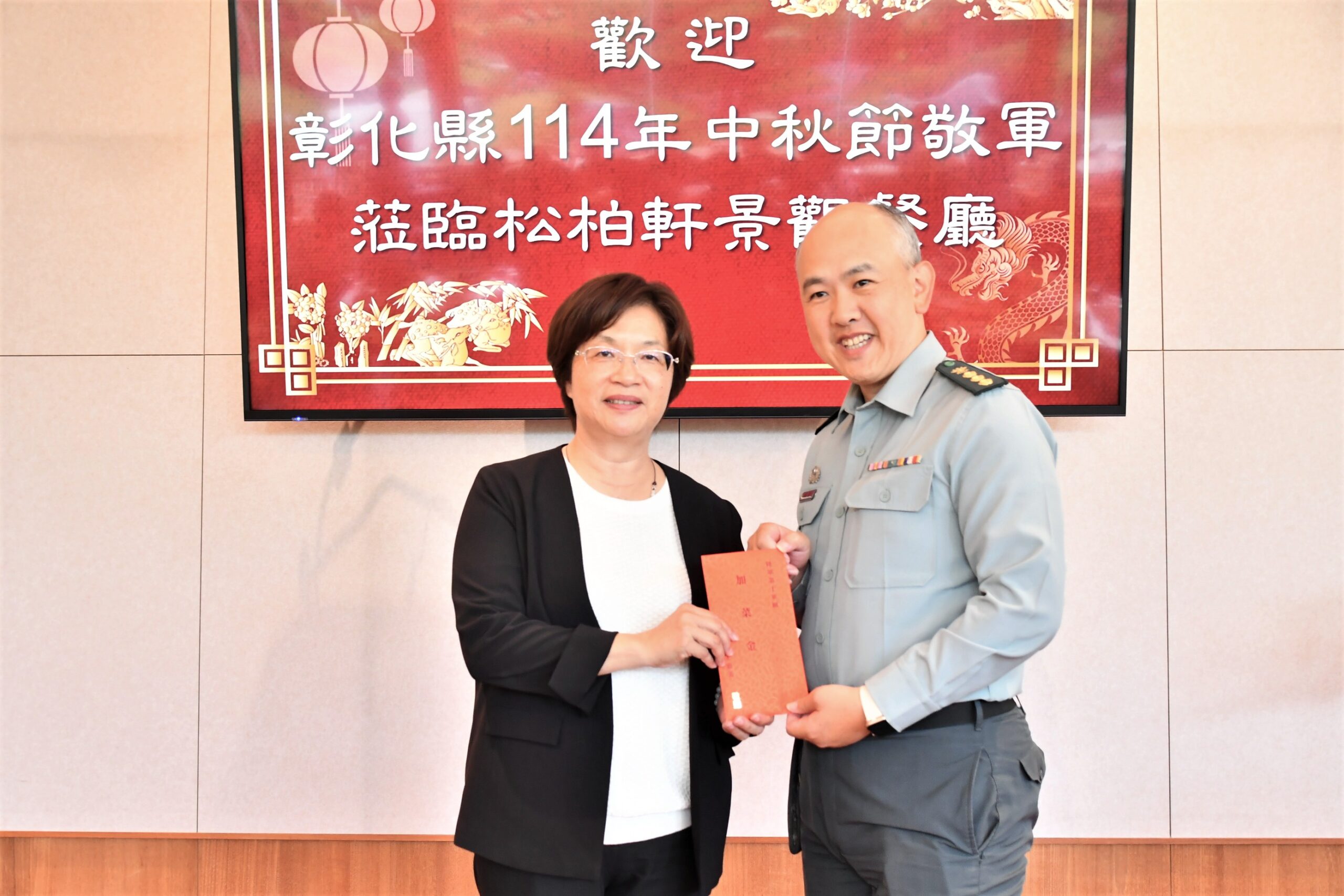(觀傳媒彰化新聞)【記者陳雅芳/彰化報導】為感謝國軍官兵長期守護地方安全、支援救災與協助縣政建設,彰化縣政府今(24)日特別邀請邀請包括彰化縣後備指揮部在內的16個駐軍單位主官或代表共襄盛舉。縣長王惠美致贈中秋加菜金,向國軍弟兄們致上敬意。