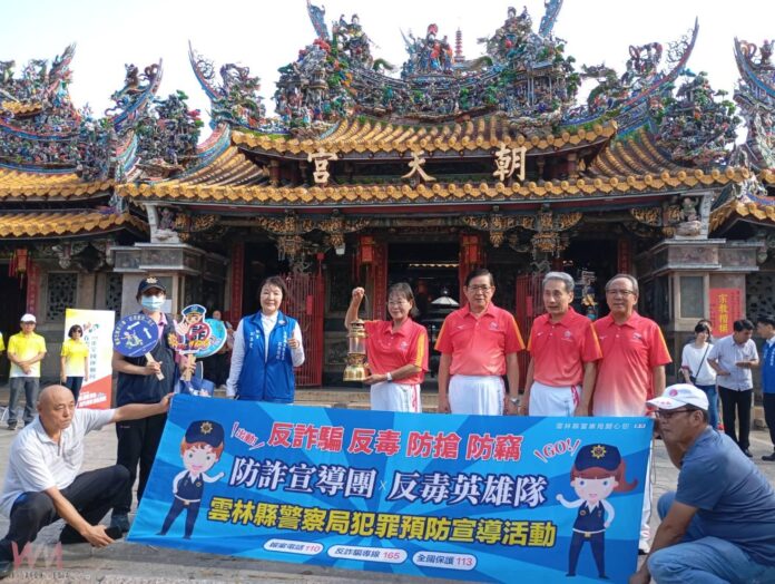 北港警分局副分局長何漢釗特別率領分局預防犯罪宣導團參與縣府聖火母火接引儀式,向現場民眾宣導反詐騙及廉政觀念。現場副縣長、與會貴賓及民眾共同手持宣導立牌與布條合影,以實際行動呼籲全民防詐。