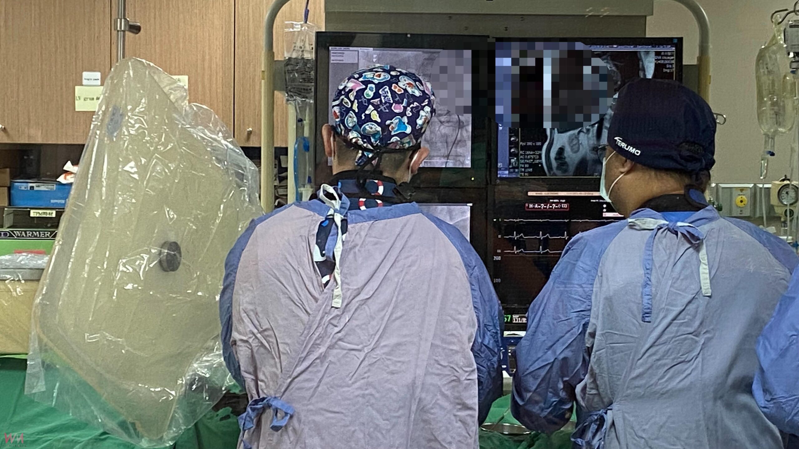 針對王姓患者,醫療團隊選擇TACE治療。員榮心導室主任林彤宥說明,TACE(經動脈導管肝臟腫瘤化學栓塞術)透過穿刺腹股溝動脈,將導管導入供應腫瘤的肝動脈分支,注入化療藥物與栓塞粒子,既能阻斷腫瘤血液供應,又能讓藥物直接集中作用在腫瘤上,減少全身性副作用。