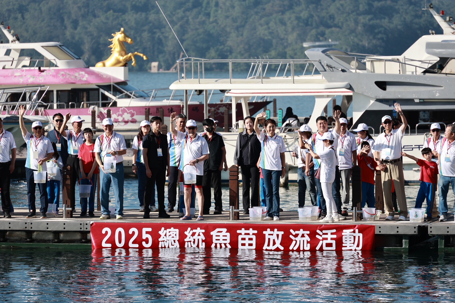南投縣致力於打造宜居城市,「永續創新」是縣政發展的重要目標之一。魚苗放流活動做為日月潭國際萬人泳渡系列活動的傳統項目,由縣府農業處結合日月潭區漁會辦理,活動不僅與生命教育緊密相關,還具備促進漁業永續與保護生態的雙重意義。在萬人泳渡活動當天上午7時30分,縣長許淑華及大會多位貴賓一同在水社碼頭放流1萬條曲腰魚(俗稱總統魚)魚苗,此活動不僅豐富了萬人泳渡的內涵,還傳達日月潭生態永續的教育理念,並結合永續環境議題、城市永續,讓南投更有生命力、更有動能。