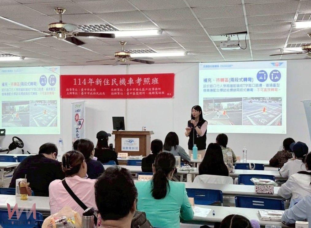 (觀傳媒中彰投新聞)【記者廖妙茜/台中報導】為保障新住民行車安全,台中市西屯區戶政事務所攜手台中區監理所於9月20日、9月21及9月27日三個週末假日,在西屯區瑞聯駕訓班開辦「新住民機車考照班」,規劃道路交通法規、駕駛道德與交通安全常識、機車防禦駕駛及安全騎乘等學術科課程,協助新住民熟悉交通規範並強化實際操作能力,於28日舉行原地考照。台中市政府民政局長吳世瑋表示,14名學員中共有12人參加考試,最終有5人順利取得機車駕照,成功晉升為「新」手駕駛,未來騎車上路更安心。