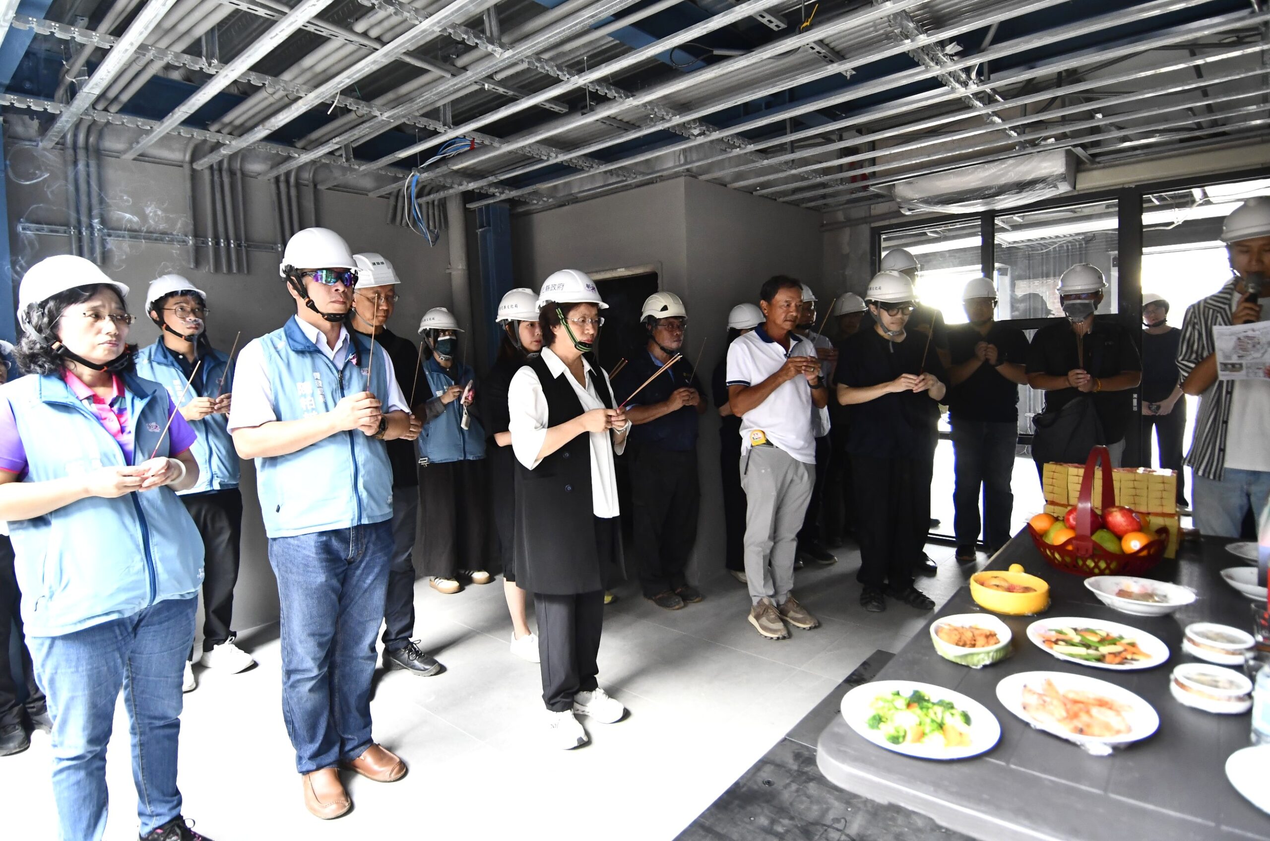 彰化縣長王惠美今(29)日前往中興莊視察,並與縣府團隊、策展單位及施工團隊代表共同舉行祈福儀式。她感謝工班全力趕工,讓眷村空間能在展期前完工。王惠美表示,「人人百貨」不僅是一個展覽場域,更代表文化資產修復與青年創新結合的具體實踐。