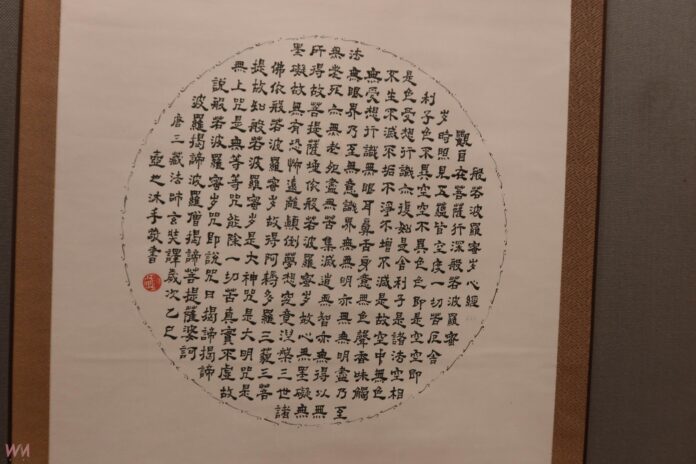 2024年退休返台後,再度揮毫《百體心經》,以百種書體呈現佛典智慧與藝術之美,每一筆每一畫都凝聚深厚功力與沉穩氣度。廖女士表示,書法對她而言,是與古聖先賢心靈相通的方式,也是精神寄託與生活樂趣的結合。