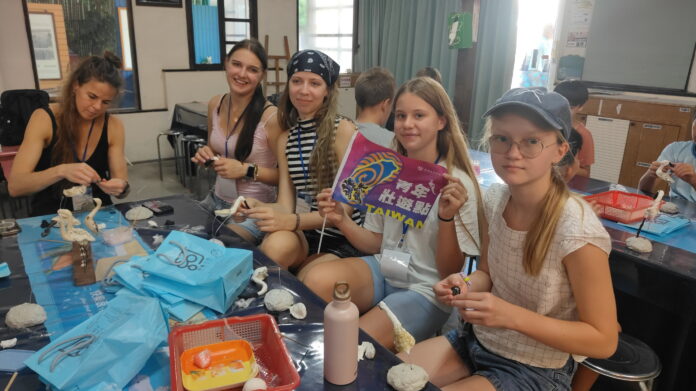 來自愛沙尼亞的學生代表 Alina 也難掩興奮地分享:「能用蚵殼創作黑面琵鷺,真的很特別,也很有趣!」