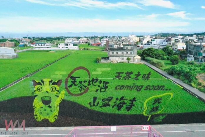 (觀傳媒編輯中心)【記者廖妙茜/綜合報導】 苗栗苑裡素有「苗栗穀倉」之稱,稻作的面積及產量皆位居全縣第一,而苑裡鎮農會所研發的稻田彩繪技術更是觀光亮點。今年一期稻作的彩繪主題呼應媽祖信仰,以白沙屯媽祖「尚勇」與足跡圖案為主,同時舉辦「天后派對」系列活動,吸引大量人潮。而今年二期的稻田彩繪圖案與苗栗縣政府及農村水保署合作推出「天茶地酒、山盟海寺」,加上苗栗縣的觀光代言人「貓裏喵」助陣,即日起至11月開放參觀(週一公休),邀請民眾可以踴躍前往拍照打卡,並一起到苗栗的農村社區去走走。