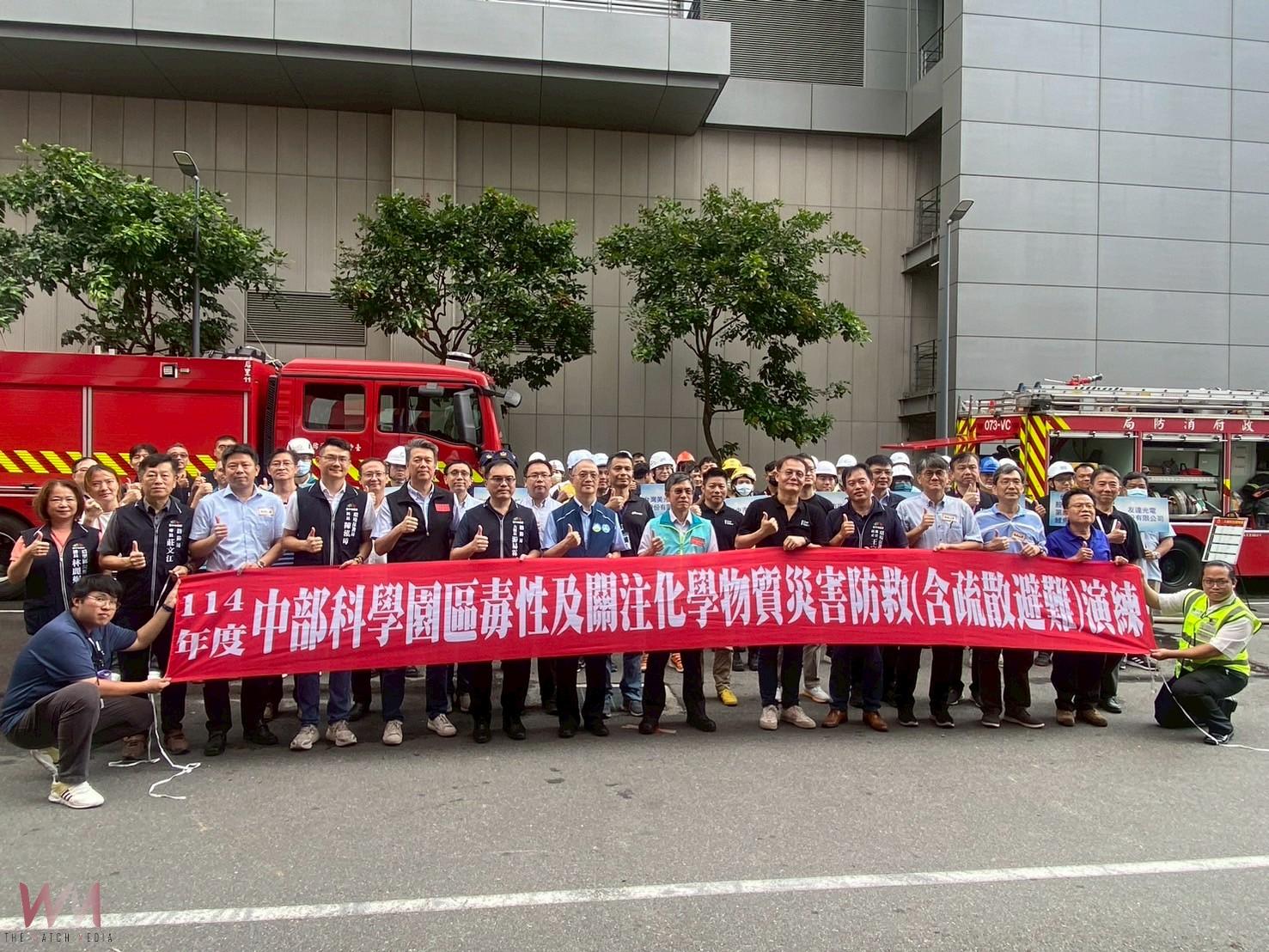(中都新聞)【記者蔡蕎如/台中報導】為強化市府與中部科學園區聯繫機制及災害防救應變能量,台中市政府環保局與國家科學及技術委員會中部科學園區管理局共同舉辦「114年度中部科學園區毒性及關注化學物質災害防救(含疏散避難)演練」,演練情境設定為后里園區內台灣美光記憶體股份有限公司發生地震後遭遇不明人士操作無人機攜帶汽油彈襲擊,導致火災及毒化物洩漏等複合性災害事故,共動員10個單位,參與演練人員約100人,演練過程詳實逼真。