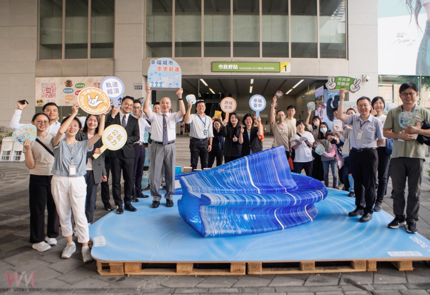 捷工局指出,此次計畫特別邀請逢甲大學建築系副教授盛郁庭率領ROSO機器人建造實驗室共同參與,以可回收、耐候性佳的PETG環保材料結合機器人3D列印技術,打造兼具造型與實用性的公共藝術裝置《書游!水唷》。作品以水波紋理為設計語彙,象徵閱讀帶來的心靈流動與靜謐能量,名稱寓意「書中漫遊」之趣,並融合台灣口語中對美好事物的讚嘆語氣,期望透過趣味而詩意的形式,邀請市民佇足、閱讀、思考,於片刻間獲得放鬆與啟發。
