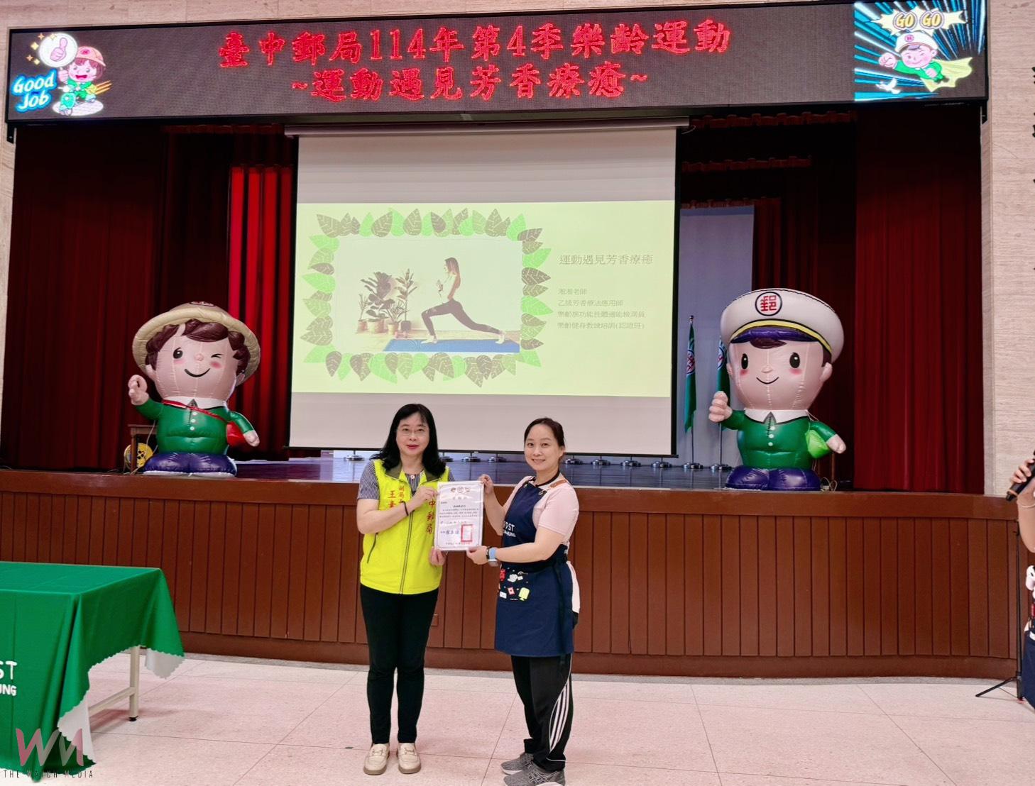 臺中郵局葉玉瑕局長表示,中華郵政長期重視高齡長者與多元族群的福祉,本次「運動遇見芳香療癒」活動,結合樂齡運動與身心靈健康推廣,讓長者在舒適、安全的環境中交流互動,體驗郵政關懷的用心。臺中郵局將持續辦理更多元、貼近民眾需求的活動,陪伴大家邁向健康、快樂、幸福的樂齡生活。