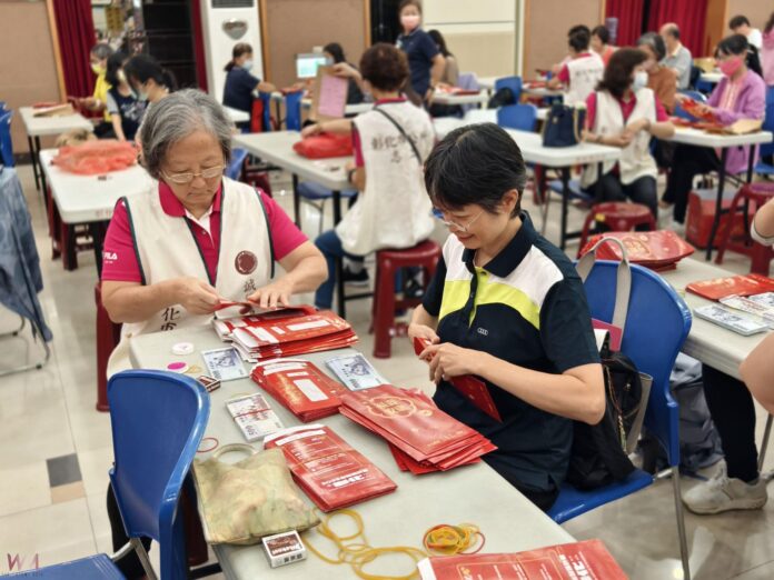 今(16)日上午在彰化生活藝文館內,現場響起整齊的點鈔聲,數百名公所人員與志工忙著分裝紅包袋,場面熱鬧溫馨。市長林世賢也親自下場與大家一起點鈔,笑稱:「這是最開心的工作,因為每一個紅包都代表對長輩的祝福!」