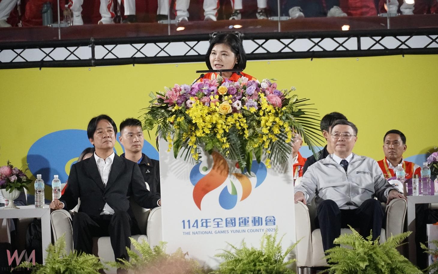 縣長張麗善致詞時表示,雲林近年建設成果卓著,農業產值即將突破千億元,觀光人次從108年的700萬人增至去年的2,000萬人,並在國際智慧城市評比中躋身全球前七,成為全台唯一入榜的縣市。她強調,本屆全運會不僅展現運動競技,更象徵雲林進步與榮耀。