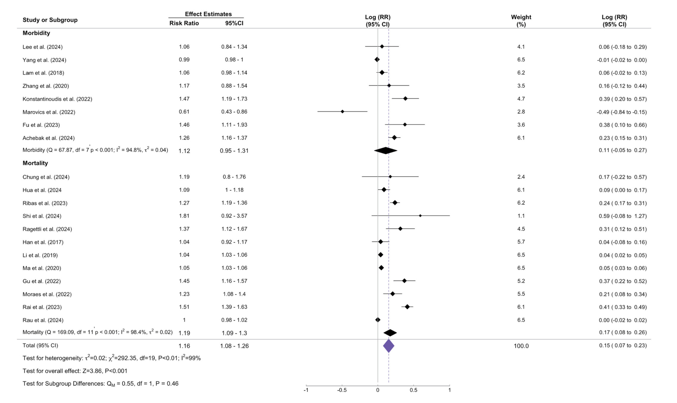 北醫大胸腔醫學研究中心莊校奇副主任率領研究團隊蒐集全球2000年至2024年間25項相關觀察性研究逾3千筆資料,針對極端溫度環境對COPD患者造成的影響,結果發現,在極端高溫環境下,患者發病與死亡的風險會增加1.16倍,女性族群的風險又高於男性族群0.14倍;而極端低溫對健康威脅更大,COPD患者發病風險會提高1.47倍,死亡風險提高約1.32倍,這篇研究已發表於《Science of The Total Environment》。