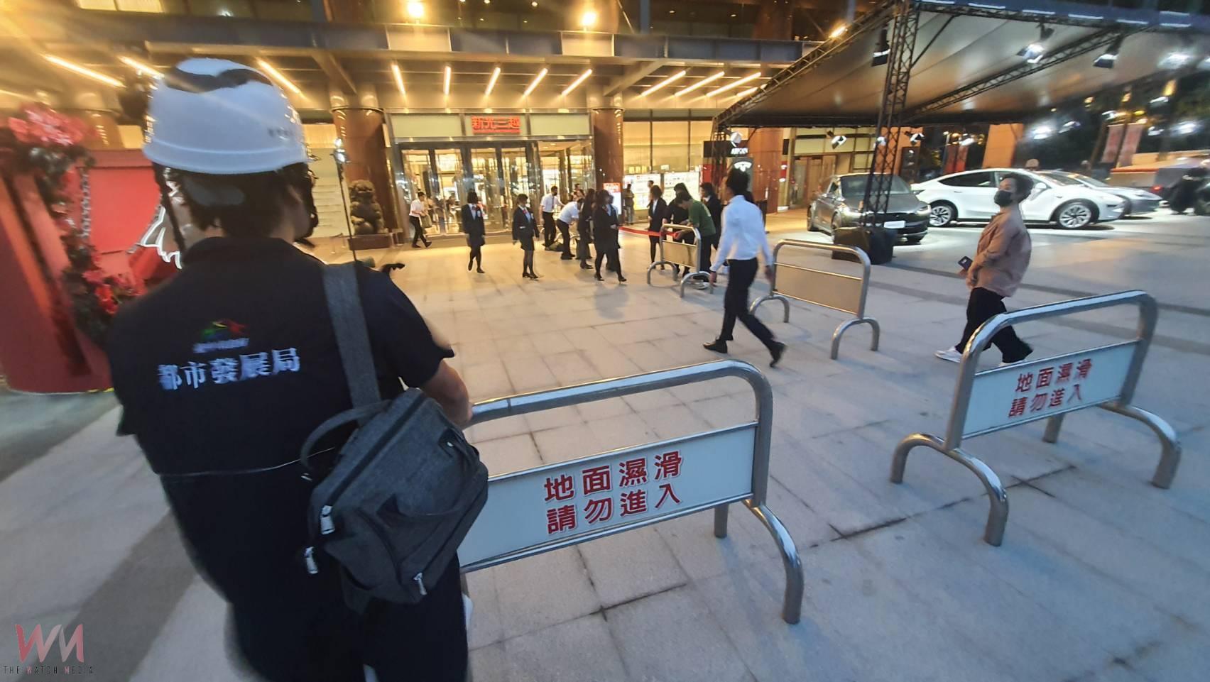 都發局表示,獲通報後都發局立即派員到場,與新光三越百貨管理人員到1樓、4樓露台等處勘查破損位置,經調查破損位置在8樓,已請新光三越將從建築物內部進行清理,並限期今日清理完成;為維護公共安全,現場除張貼警告和拉設封鎖線外,後續將依外牆和附掛物掉落相關法定程序列管追蹤修復進度,也請新光三越善盡管制區域的公安維護責任,以確保民眾安全。