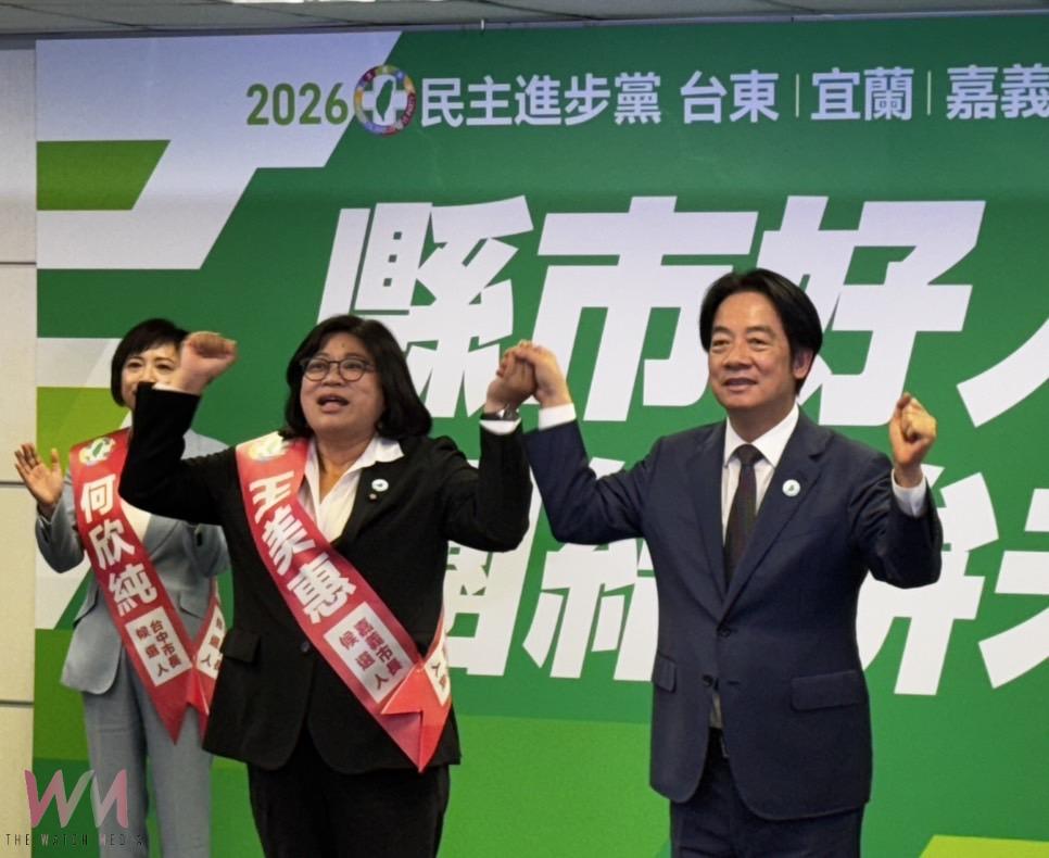 (觀傳媒嘉義新聞)【記者陳惲朋/嘉義報導】 2026嘉義市長選戰最被看好的王美惠立法委員,今(22)日終於被民進黨正式提名參選,並在民進黨中執會後,由黨主席賴清德親自為王美惠繫上競選背帶。王美惠:將以實際行動回報黨的託付與鄉親的期待。