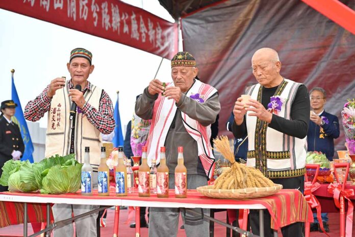 (觀傳媒宜蘭新聞)【記者陳俊傑/宜蘭報導】宜蘭縣政府消防局「南山消防分隊辦公廳舍新建工程」今(25)日舉行動土典禮,為祈求工程順利與平安,特別結合原住民與漢人祭祀祈福儀式,象徵尊重多元文化與共融精神,也展現對土地的尊重與感恩,體現族群間的互信與合作。