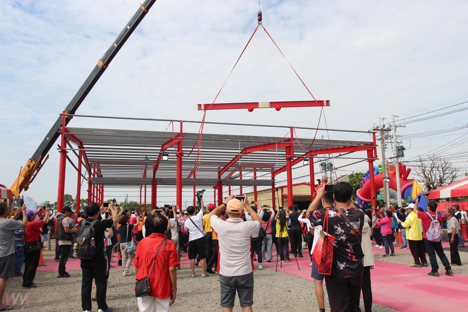 (觀傳媒雲林新聞)【記者簡勇鵬/雲林報導】雲林六房媽明(115—116)年值年的五間厝股紅壇,今(25)日上午舉行新建紅壇上樑典禮,除由115-116值年爐主顏徐素芬邀請縣長張麗善等嘉賓人共同扶樑,場面盛大熱鬧,吸引上千名信眾到場觀禮。