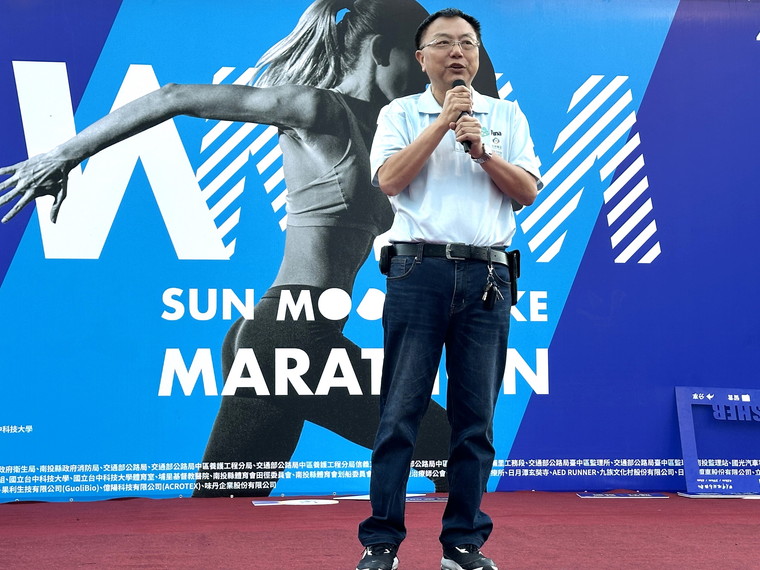 ▲南投縣政府陸正威參議代表縣長許淑華致詞歡迎來自各地選手來日月潭。(圖/記者石振賢攝)