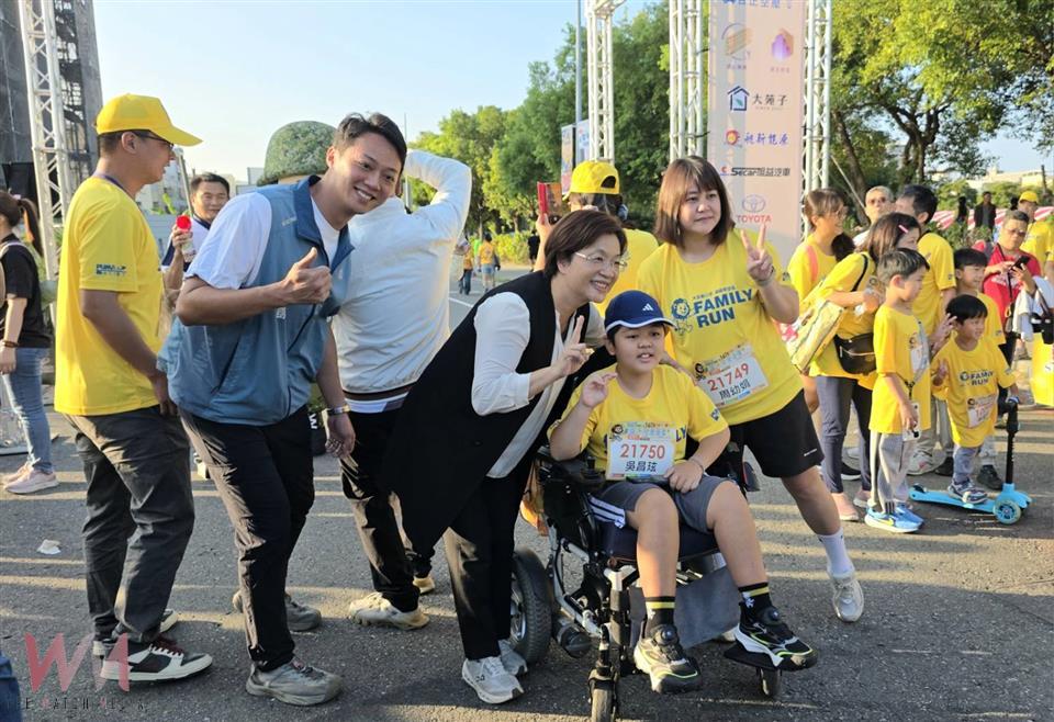 現場氣氛熱烈,家長牽著孩子的小手,邊跑邊笑;志工們穿梭在跑道兩旁,揮舞加油旗幟、發放水與能量補給,警察與消防人員負責交通管制及安全維護,整個活動在有序中充滿歡樂。