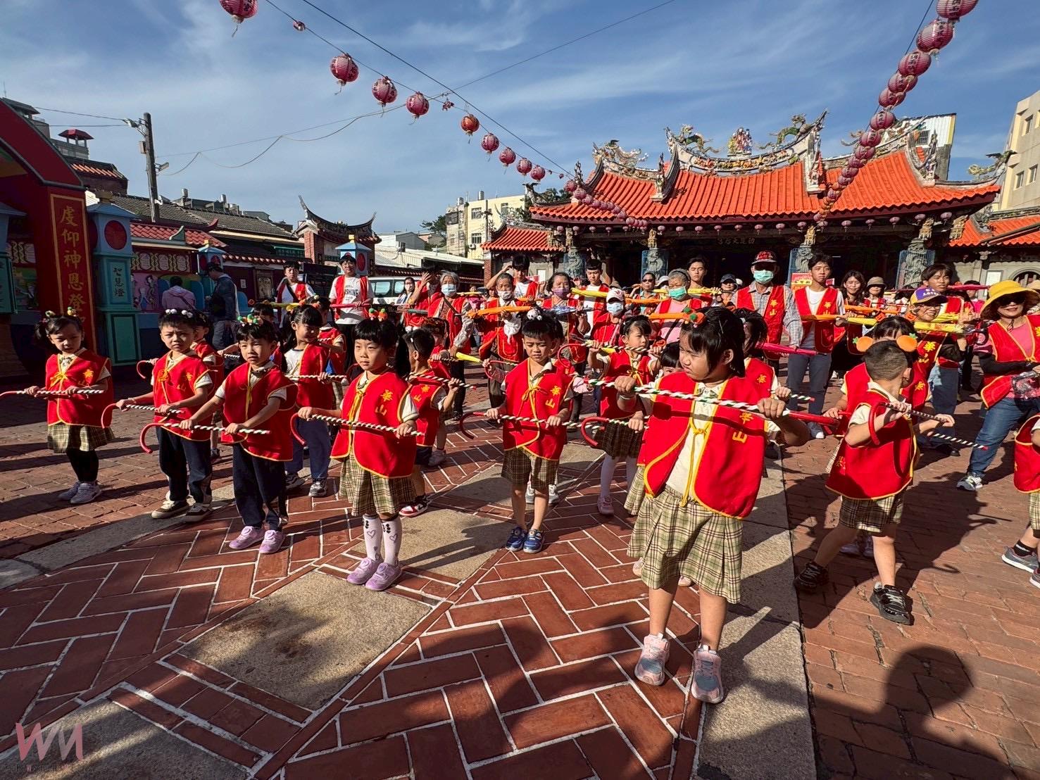 鹿港老街今日充滿歡樂氣息,華山基金會彰化場「111舞動拐杖節」在新祖宮廣場熱烈展開,天真幼兒園的小朋友與和美實驗學校的學生,率領111位老中青義工,以「愛老人,你+1、我+1、再+1!」為口號,用創意拐杖舞向社區居民傳遞溫暖。