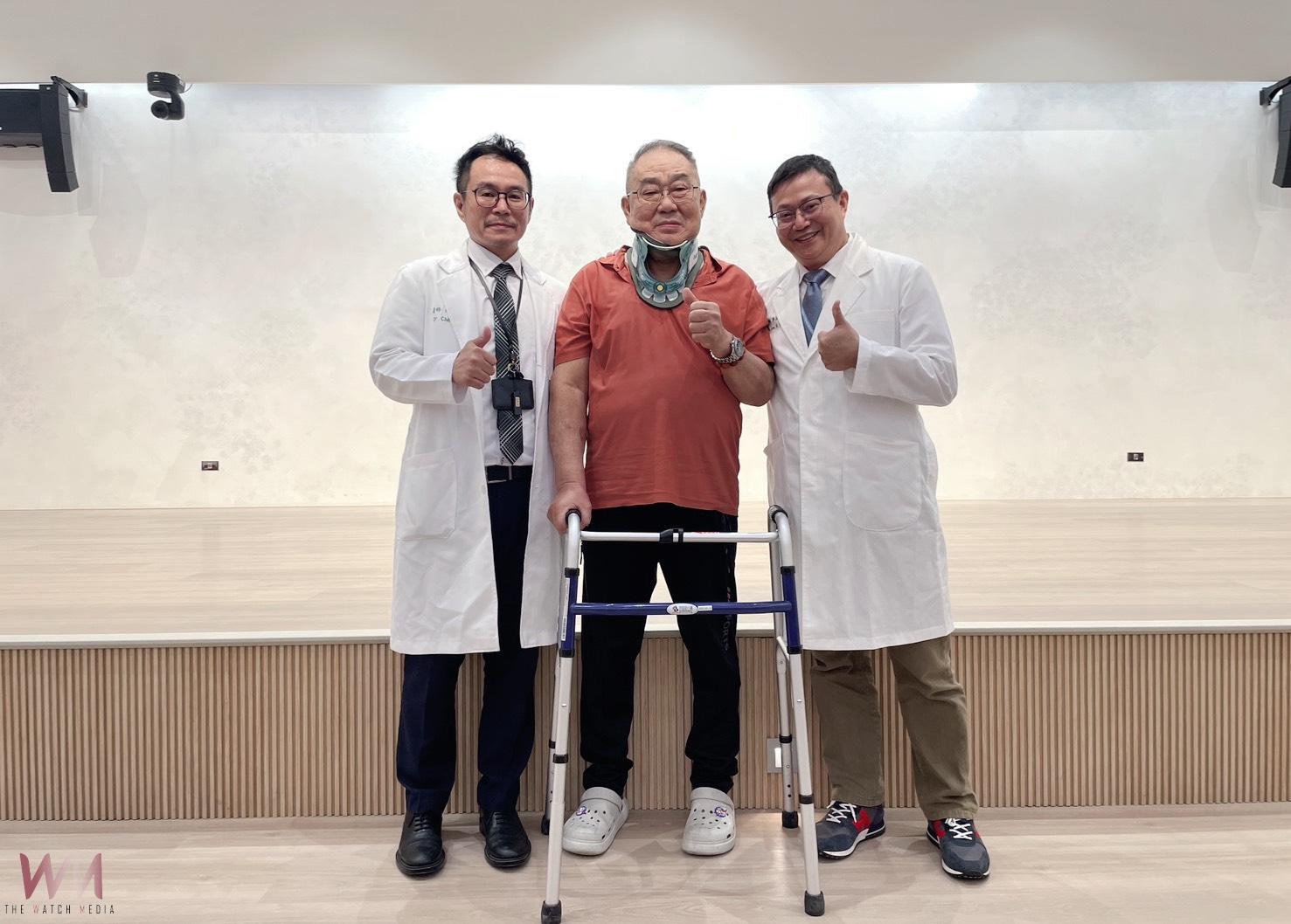 (觀傳媒中彰投新聞)【記者廖妙茜/台中報導】72歲黃姓長者患有心血管疾病與皮質酮低下症,長期服用抗凝血藥物與腎臟科治療藥物,原以為四肢無力是因皮質醇過低所致,直到今年8月因跌倒送進急診,核磁造影檢查後轉介至本院神經外科陳肇烜主任門診,才確診為頸椎椎間盤突出造成脊髓嚴重壓迫。由於病患全身疾病複雜且手術風險極高,陳主任偕同多專科團隊以微創方式完成「頸椎椎間盤切除併支架融合手術」,全程僅耗時60分鐘。術後隔天,病人即可舉起雙手並能使用助行器下床行走,恢復情況令人振奮。