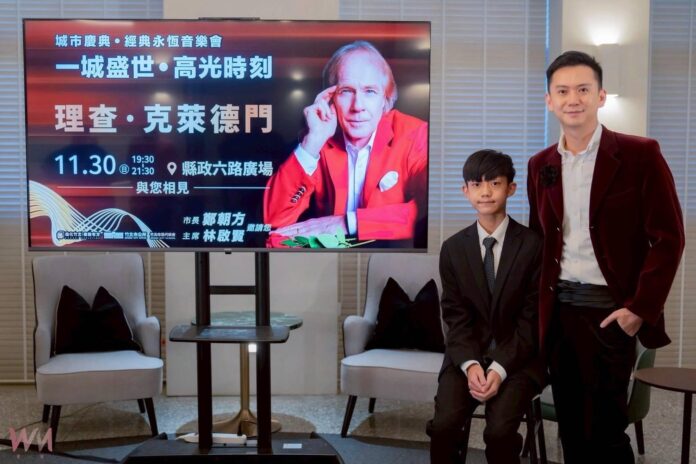 (觀傳媒桃竹苗新聞)【記者金祐妤/新竹報導】國際知名的鋼琴巨擘、理查克萊德門將於11月30日蒞臨竹北演出,帶來90分鐘的戶外音樂饗宴,場地在新竹縣政府前廣場,竹北市長鄭朝方今(7)日下午召開記者會公布這個好消息時,現場驚呼聲不斷,鄭朝方也與成功國中琴藝卓越的朱品叡同學攜手,四手聯彈「水邊的阿蒂麗娜」,朱品叡聽見理查克萊德門將到竹北時,開心直呼「希望有機會和他同台」。