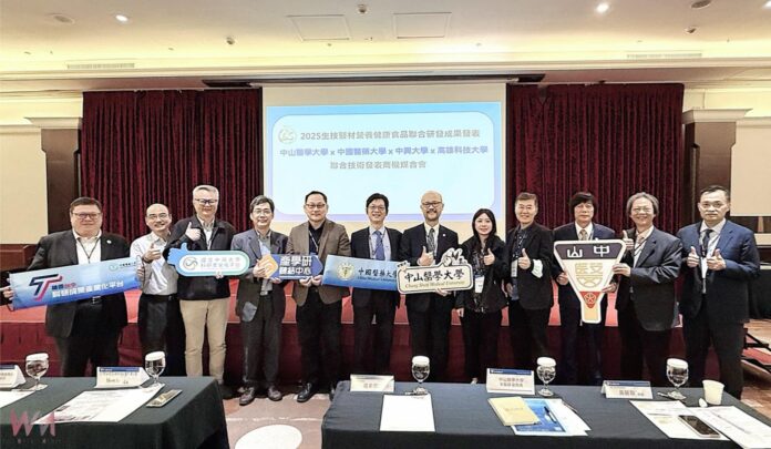 (觀傳媒中彰投新聞)【記者廖妙茜/台中報導】台中中山醫學大學為慶祝創校65週年,14日在福華大飯店舉辦「2025生技健康跨校研發成果發表與技術媒合會」,與大南方科研平台盟校高雄科技大學、國立中興大學及中國醫藥大學共同展示十多項生醫技術成果。活動邀請台中市府、中科廠商、生技和醫療體系及多所大學代表出席,展現中部產官學研整合的研發量能。
