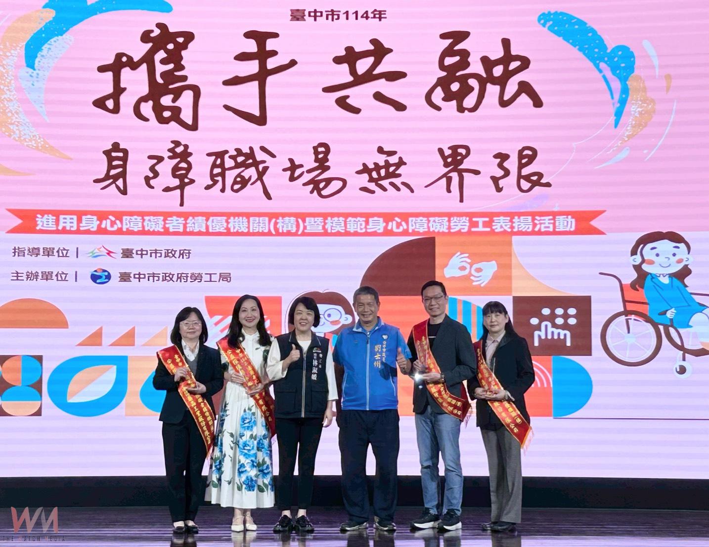 (觀傳媒中彰投新聞)【記者廖妙茜/台中報導】為鼓勵事業單位積極進用身心障礙者,並肯定身障朋友在職場上的堅持與貢獻,台中市政府勞工局於今(27)日舉辦「中市114年進用身心障礙者績優機關(構)暨模範身心障礙勞工表揚活動」,頒發包括楷模獎1名、優良事蹟獎10名、模範身心障礙勞工10名、公益採購獎10名,以及職場體驗友善廠商3名,共計34個單位及個人獲獎,場面溫馨感人。