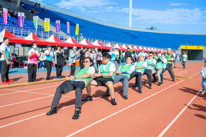 運動賽事高潮迭起,包括拔河、大隊接力等,現場加油聲震耳欲聾,參賽隊伍全力以赴。(彰化基督教醫院提供)