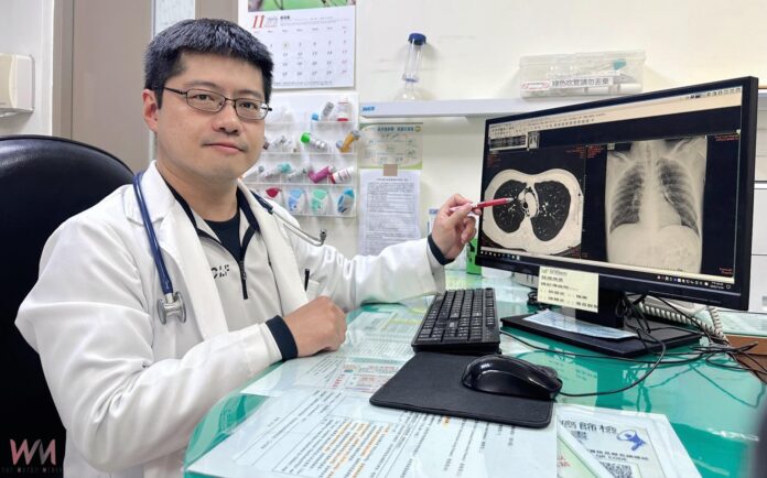 胸腔內科醫師陳君禮說明,患者平時身體健康,唯一的誘因是感冒引起的劇烈咳嗽,未料竟因導致胸腔內氣體外逸,所幸經氧氣治療及住院觀察後,已經康復出院。(圖/衛福部豐原醫院提供)