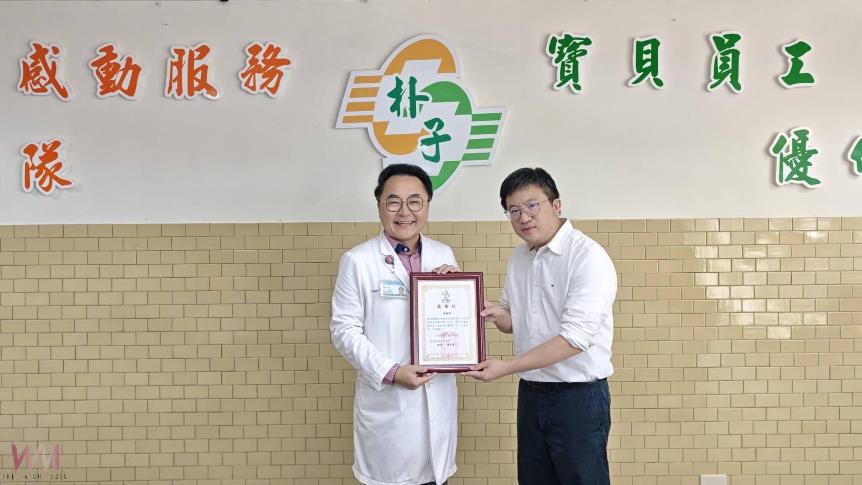 曹承榮院長代表朴子醫院致贈感謝狀,感謝泰博科技股份有限公司董事長陳朝旺博士,由陳信宏經理代表接受;朴子醫院未來將持續深化智慧醫療應用,透過科技改善臨床作業流程,打造更安全、即時與高品質的照護環境,守護嘉義濱海地區民眾的健康。