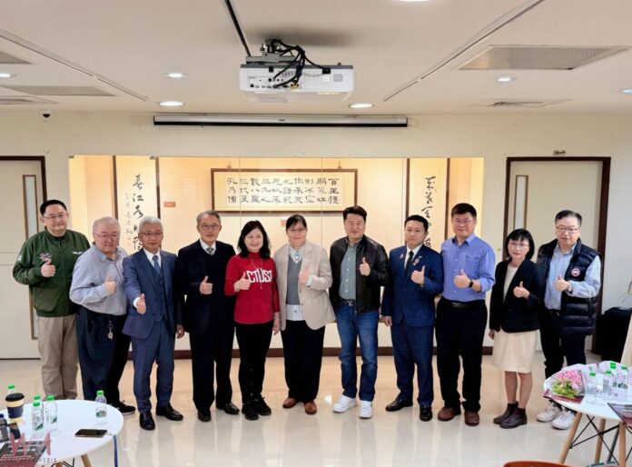 中臺科大陳錦杏校長(左5)、郭榮昌董事(左4)、校友總會朱光華理事長(左3)、系所主管們與2025年傑出校友合影。(圖/記者廖妙茜拍攝)