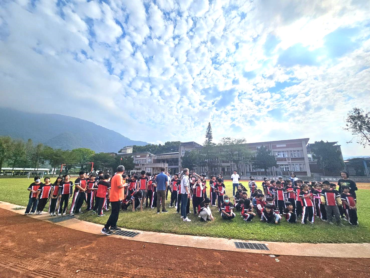 ▲忠孝國小的師生在操場邊,準備迎接石犀牛的到來。(圖/潘祈賢教授提供)