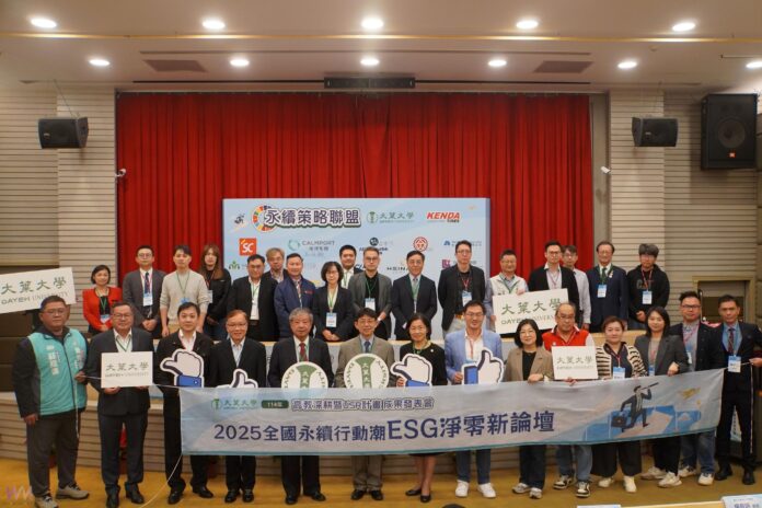 大葉大學今(5)日舉辦「2025全國永續行動潮:ESG淨零新論壇」,啟用全新永續校園場域並與企業簽署策略聯盟,展示 SDGs 與 USR 的最新成果。(大葉大學提供)