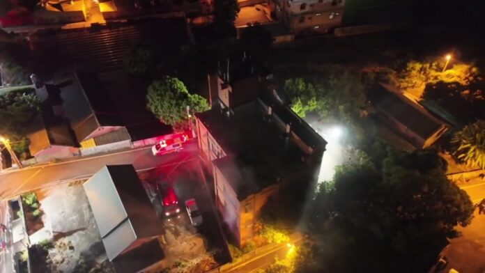 彰化縣溪湖鎮崙子腳路一棟五層樓透天厝今(8)日凌晨1時54分發生火警,濃煙伴隨火舌瞬間竄出,原本三代同堂的家庭在深夜遭遇火劫。鄰居聞聲報案,消防局立即出動12輛消防車、3輛救護車及28名人員前往現場灌救。