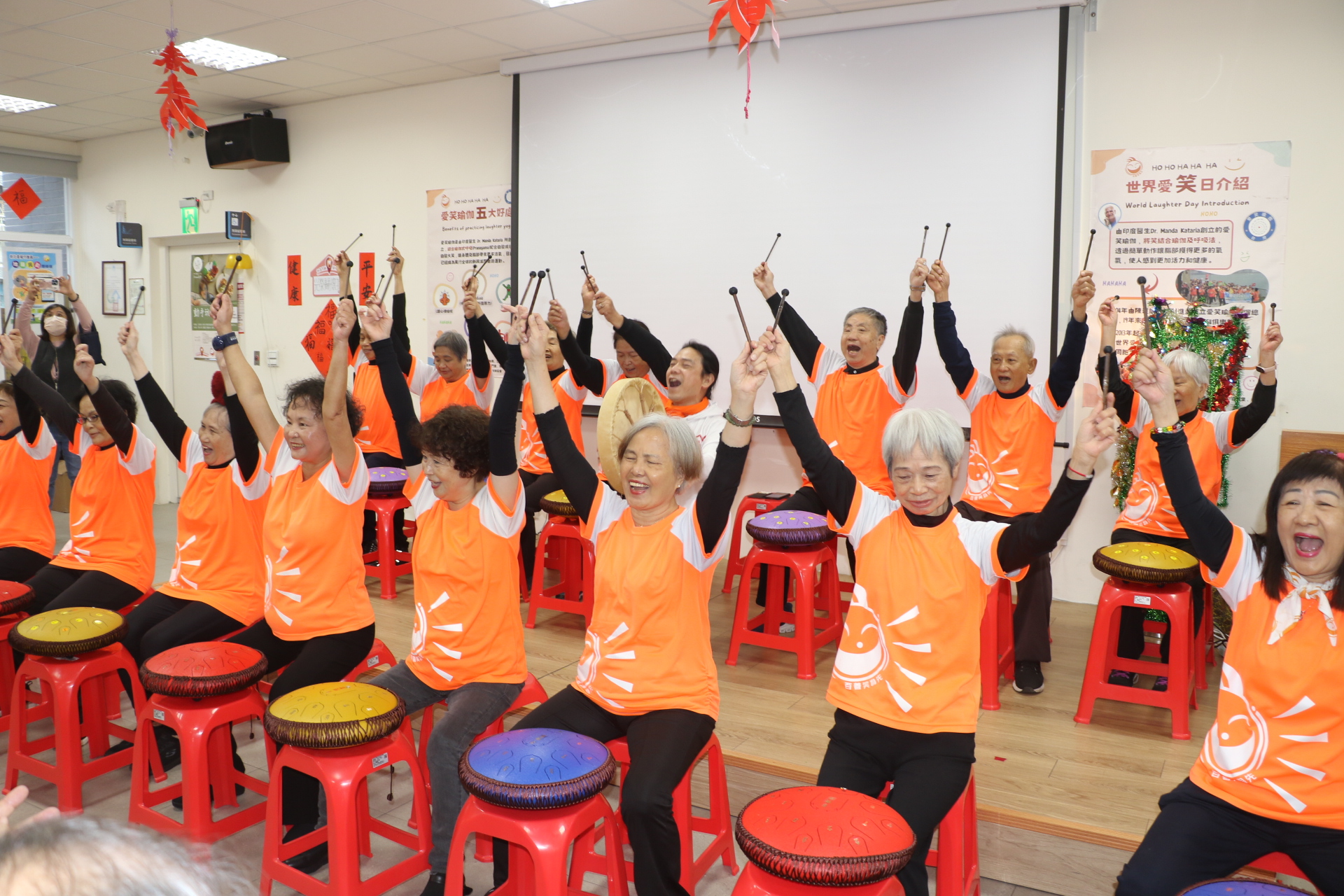(觀傳媒新北新聞)【記者蔡宇辰/新北報導】社團法人新北市愛笑瑜珈協會12月14日在三重光榮銀髮教育中心,舉辦114年度成果發表會。協會成立10年,在新北市承辦4個社區照顧關懷據點和1個失智關懷據點,創辦人王淑芳表示,面對超高齡社會,「愛笑力」不僅有益長輩身心健康,還能延緩失智失能。在成果發表會中,就有愛笑寶貝志工團帶領五股康復之家精神障礙者一起表演,現場充滿熱烈掌聲和「喝-喝-哈-哈-哈」的回饋。
