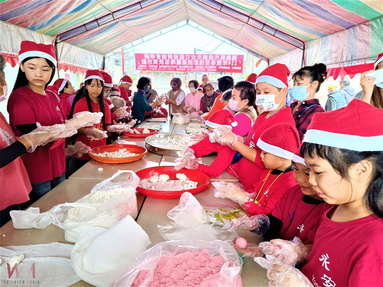 隨後由社區長輩親自示範傳統搓湯圓的技巧,從揉製糯米糰、分切到搓成圓潤飽滿的湯圓,孩子們圍繞在長輩身旁專心學習、踴躍提問,過程中笑聲不斷、互動熱絡。透過實際操作與口述分享,學生不僅認識節慶飲食文化的由來,也在與長輩的交流中體會世代傳承與人情溫度的珍貴。
