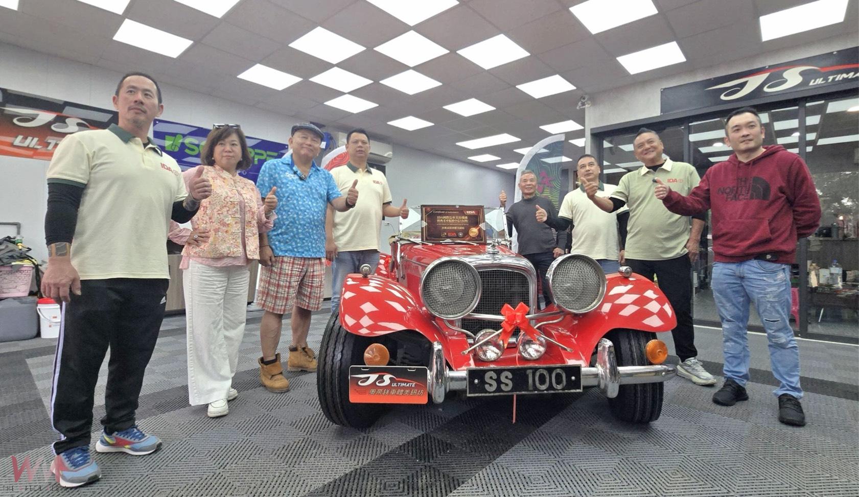 活動現場展示了一輛極具傳奇色彩的紅色捷豹(Jaguar)經典古董跑車,成為媒體矚目的焦點。主辦單位特別說明,這輛古董跑車在執行美容前,漆面因年代久遠而顯得晦暗且佈滿細微紋路。現場由 IDA 認證技師團隊依照國際標準流程執行。首先,透過科學儀器檢測漆面厚度,確保在「不傷原漆」的非破壞性前提下進行修復。接著,利用 IDA 規範的藥劑與低溫拋光技術,逐一排除氧化層與刮痕。經過 IDA 工法修復後,捷豹跑車重現了半世紀前的深邃光澤,鍍鉻件與鋁圈亦恢復亮眼鏡面效果,完美詮釋了「讓價值延續」的活動理念。