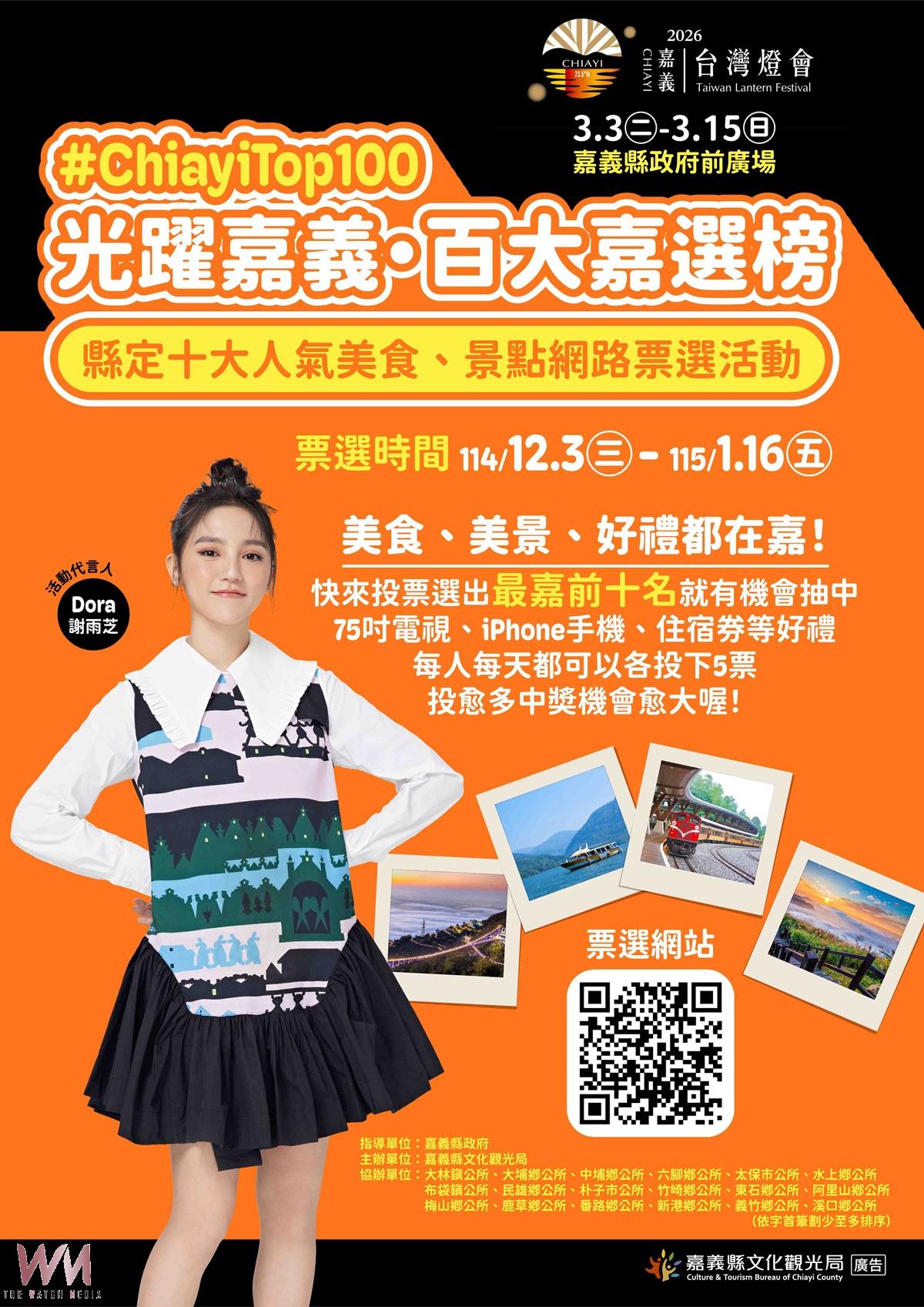 嘉義縣政府指出,本次票選名單串聯嘉義縣18鄉鎮,集結68家美食店家及136處熱門景點,除了角逐人氣店家與景點,也為2026台灣燈會提前暖身,透過「百大嘉選榜」票選名單,讓遊客更有方向的深度體驗嘉義縣。目前已有上萬網友熱情響應,參與店家也紛紛動員,透過社群互動、加碼優惠等方式為活動拉票,展現全民對嘉義縣美食景點的支持。