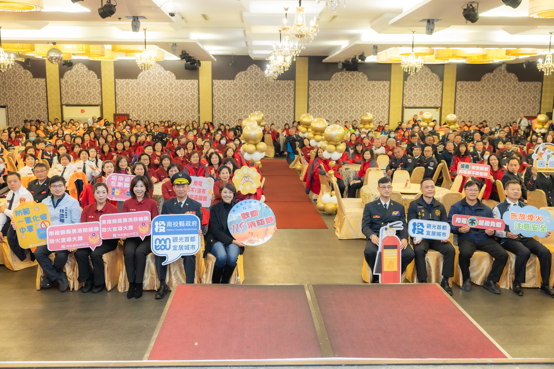(觀傳媒中彰投新聞)【記者石振賢/南投報導】1月19日將至,縣府為歡慶「119消防節」, 8日上午在南投市南島婚宴會館舉辦「歡慶119消防節暨民力團體表揚典禮」。縣長許淑華親自頒獎,感謝消防弟兄以及義勇消防、鳳凰志工、防火宣導隊、民間救難團體等民力團體平日辛勞及無私奉獻精神。