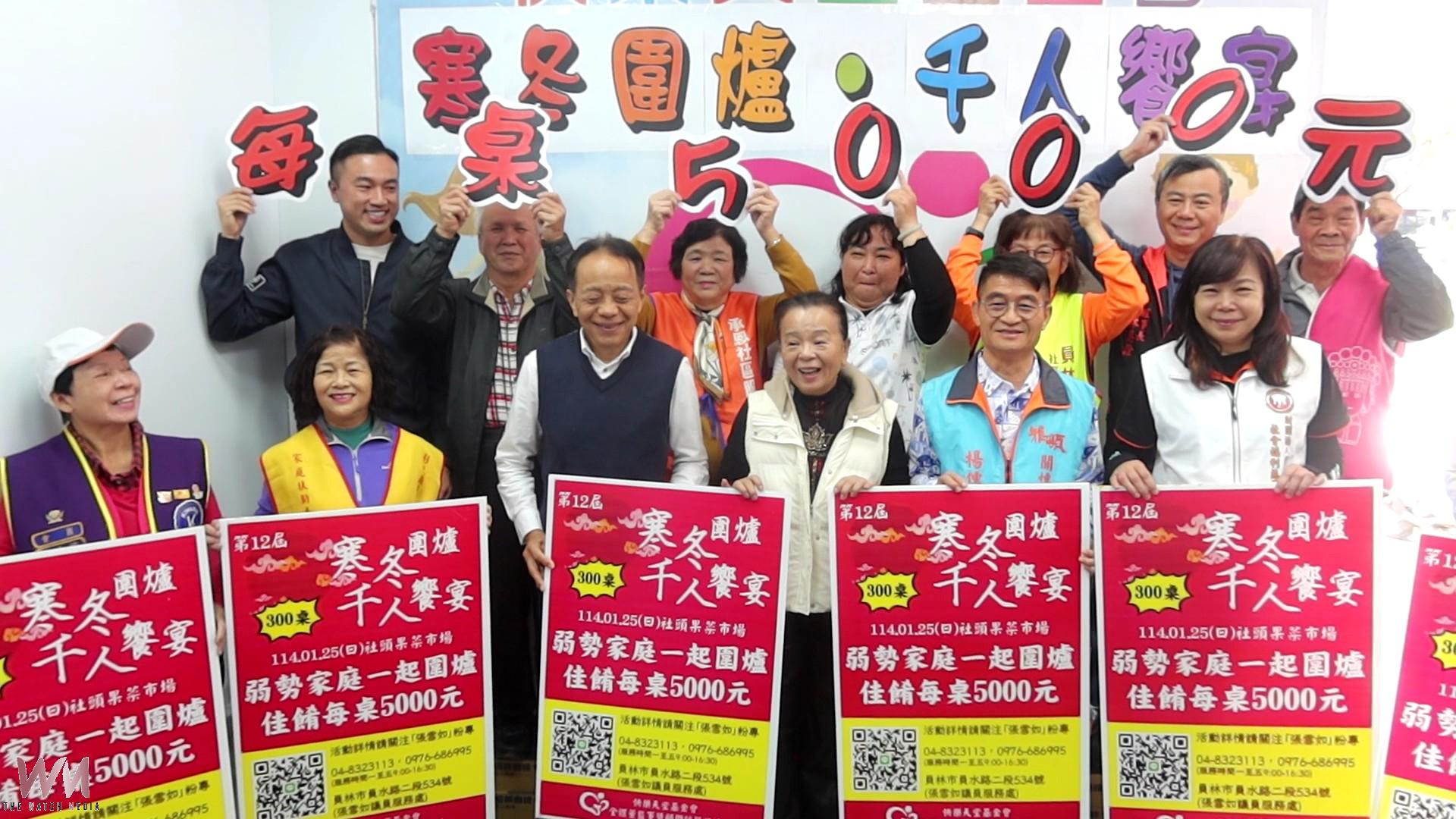 (觀傳媒彰化新聞)【記者陳雅芳/彰化報導】快樂天堂基金會第12屆「寒冬圍爐.千人饗宴」將於1月25日在彰化社頭果菜市場登場,預計席開300桌,邀約約3,000位弱勢朋友共度溫暖新年。基金會董事長張雪今(13)日如呼籲各界善心人士響應,協助縮短約250萬元募款缺口,讓每位弱勢家庭都能圍爐吃上一頓熱騰騰年菜。
