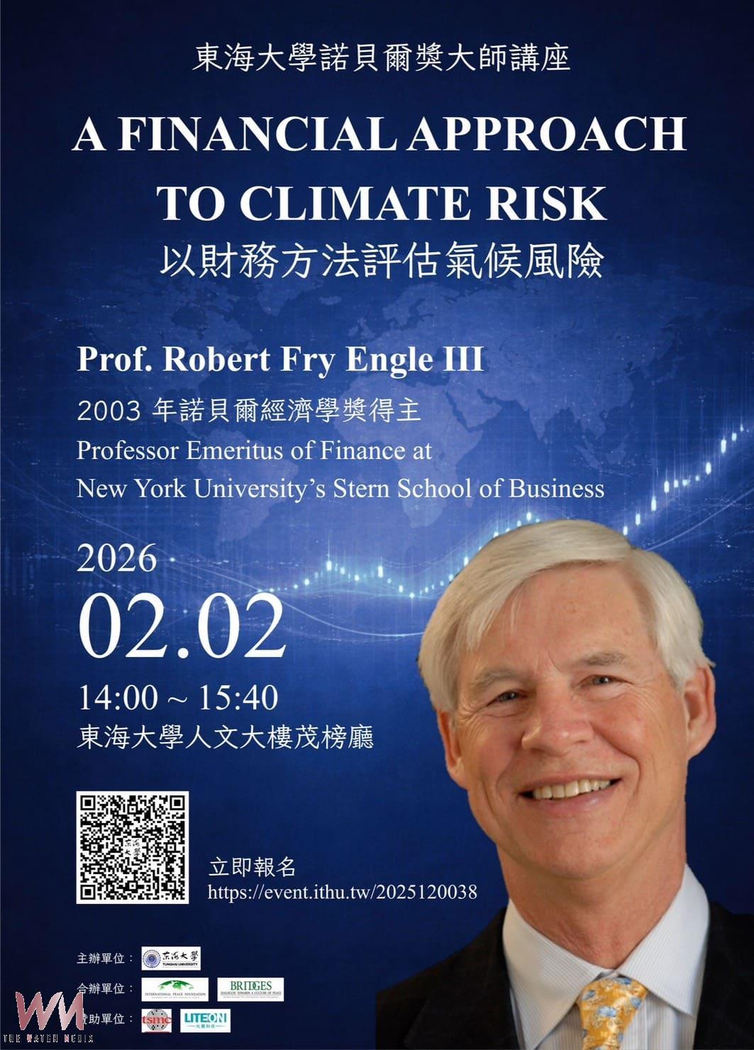 本次座談將由東海大學熟悉 Engle 教授學術貢獻的財金系郭一棟教授、以及當年在美國受教於Engle門下的中央大學高櫻芬教授擔任與談人。郭教授和高教授提到,Engle教授以建立「自回歸條件波動模型,ARCH」奠定現代金融風險分析基礎,其研究深刻影響全球資本市場、金融監理與投資實務。近年來,他將研究重心延伸至氣候變遷,試圖回答一個困擾企業與金融圈的關鍵問題:當極端氣候不再是偶發事件,而是「可預期的不確定性」,現行的財務模型是否已準備好應對?