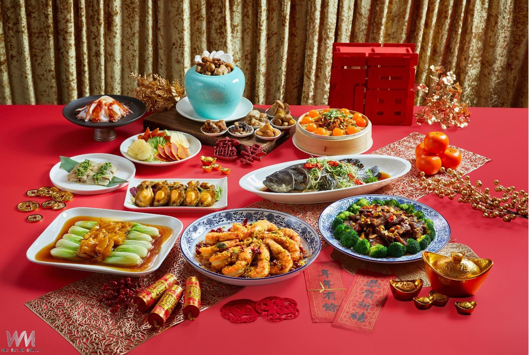 明宮粵菜廳以經典中式年節料理為底蘊,獻上豐盛澎湃的海陸珍饌,內含六菜一湯,集結鮑魚、烏魚子等高檔食材的「四事如意」,象徵新年福氣滿載。圍爐餐桌上的主角,溫潤滋養的「乾隆一品佛跳牆」,由主廚精心熬製高湯加入豬腳、排骨、芋頭、栗子等食材層層堆疊,豐潤膠質融入金黃湯底,交織食材鮮美滋味,湯韻濃郁。另有肉質細嫩、滋味清雅的「玉露雞脂龍虎斑」,以及酸香平衡、口感醇厚的「陳醋極汁牛小排」,還有香氣奔放、鮮甜彈牙的「蒜香乾椒澎湖大海蝦」。