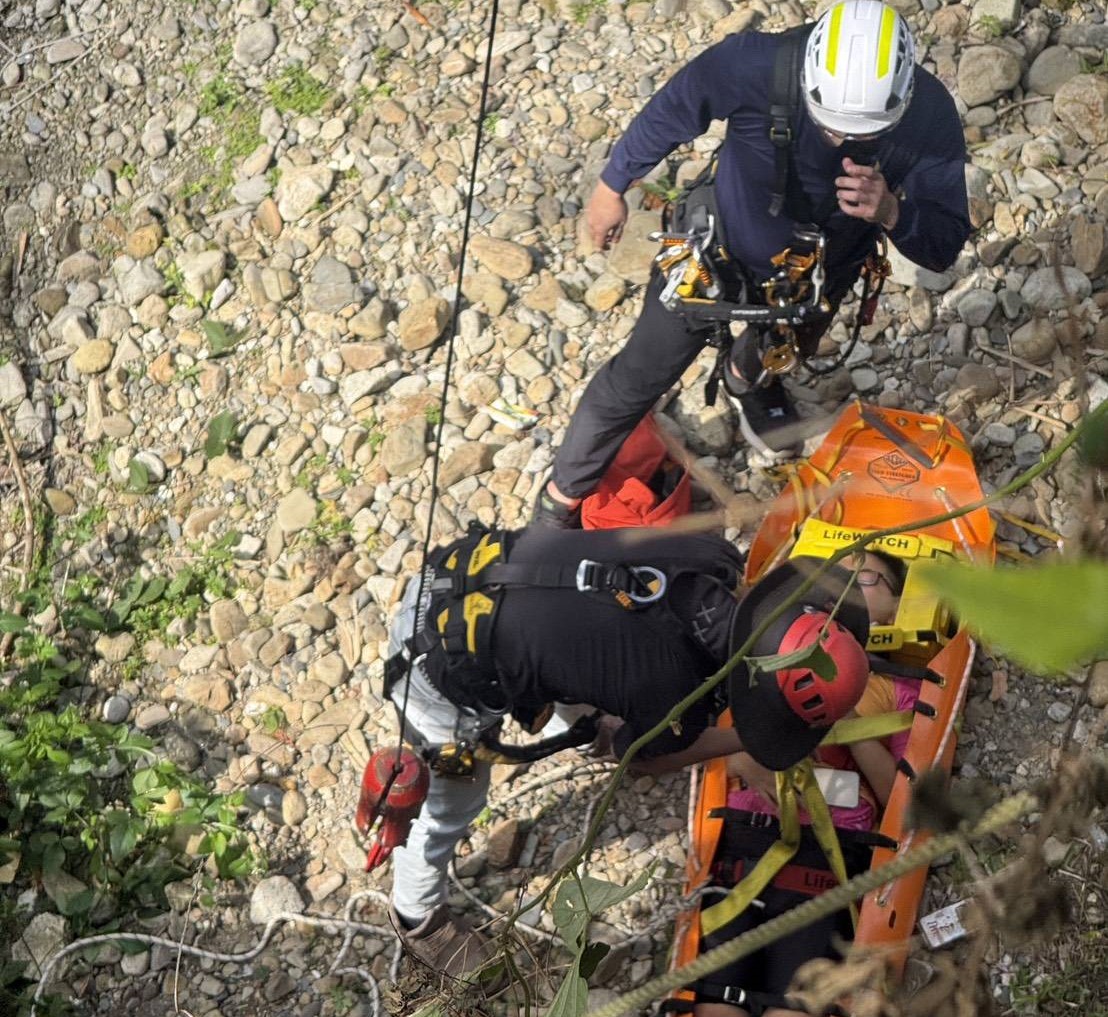 少年摔落12米橋下 魚池警消吊掛救人