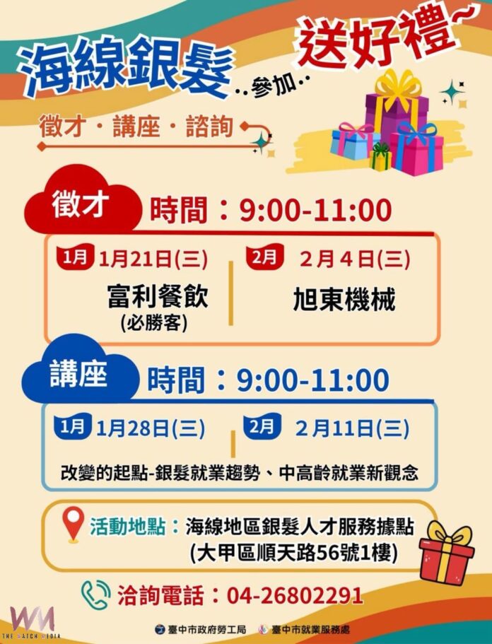 量身打造樂齡族職缺 中市海線銀髮人才服務據點1月21起辦徵才活動 - https://www.watchmedia01.com